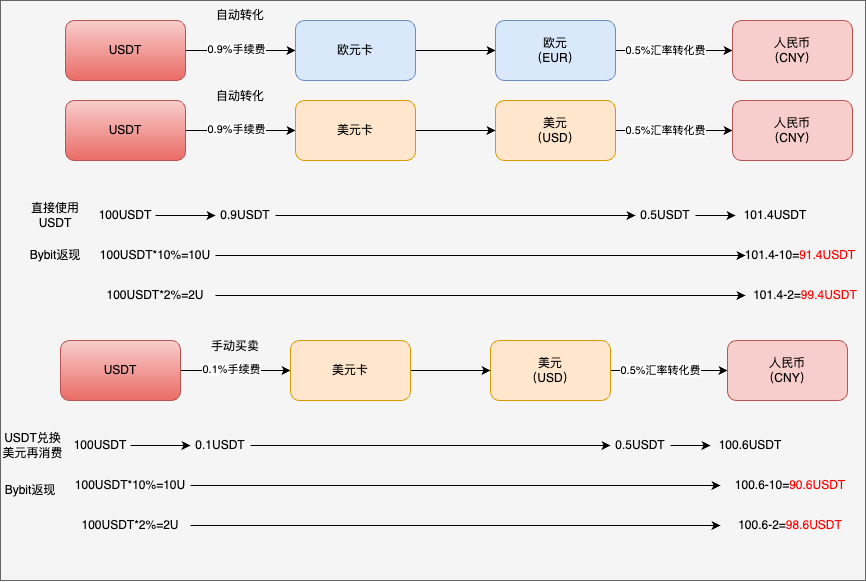 - Bybit Card 可绑定 微信、支付宝、Apple Pay、Google Pay 等消费(损耗极低,约 0.5%)